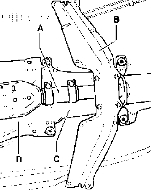 - Remove cross support -B- below exhaust system.