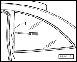 NOTE: When piercing adhesive bead, make sure that sealing lip - 1 - at window front edge is not also pierced.