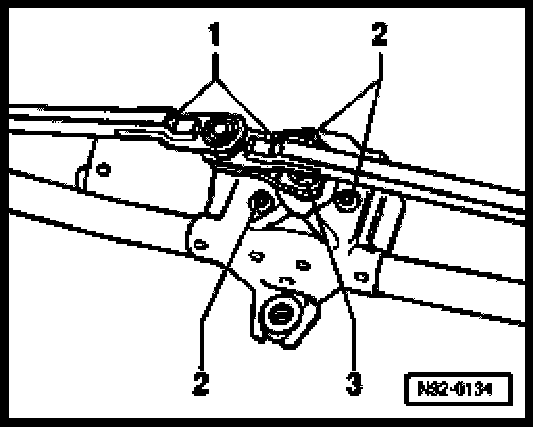 - Unbolt three securing bolts M6 -2- from wiper motor.