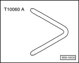 - Swing tensioning roller on hex-bolt in direction of arrow. When both holes - arrows - are aligned, secure tensioning roller using mandrel T10060A when lock carrier is in service position or when engine is removed. Lock Carrier And Front Bumper Reinforcement, Moving to Service Position