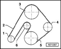 Note: Before removing the ribbed belt, mark the running direction.