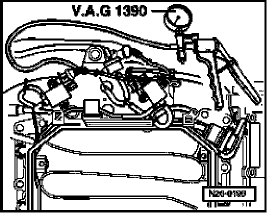 - Connect V.A.G 1390 hand vacuum pump to vacuum hose of the valve to be checked.