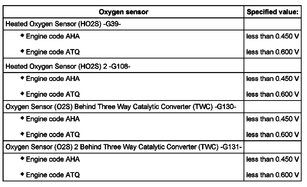 The values of the individual oxygen sensor test results must reach the specified value or must be within the min.- and max.- limits.
