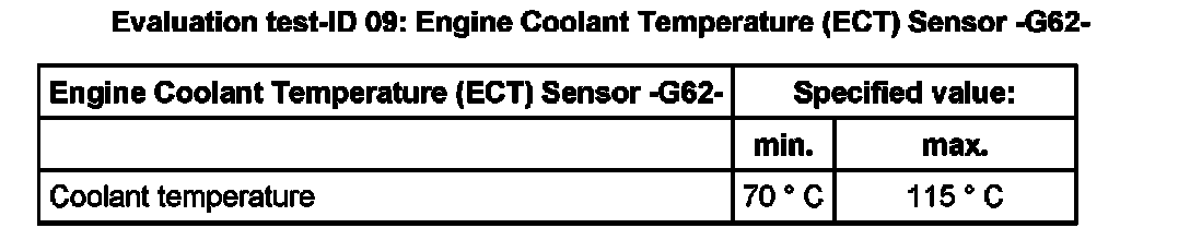 Evaluation test-ID 09: Engine Coolant Temperature (ECT) Sensor -G62-