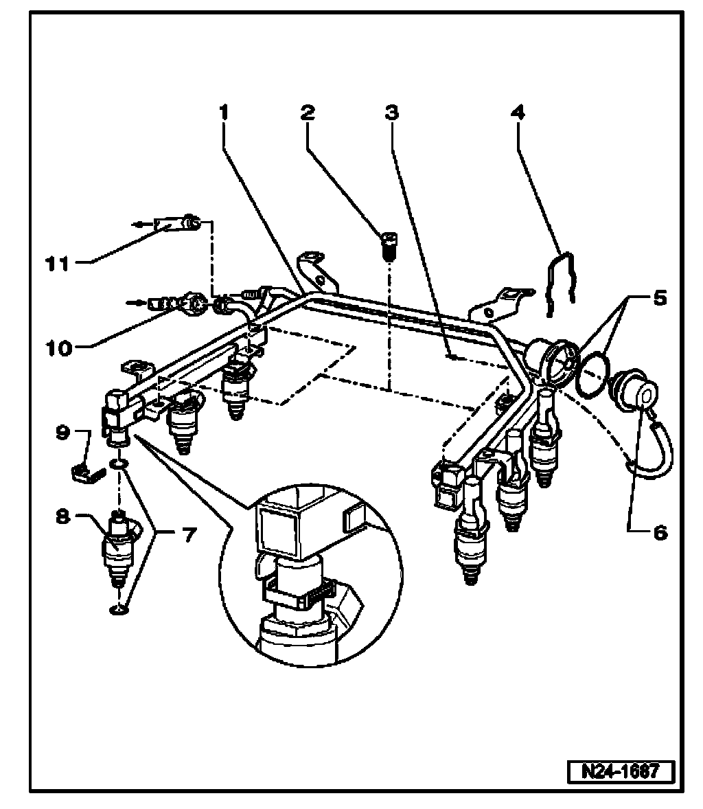 8. Fuel injector -N30- to -N33-, -N83-, -N84-