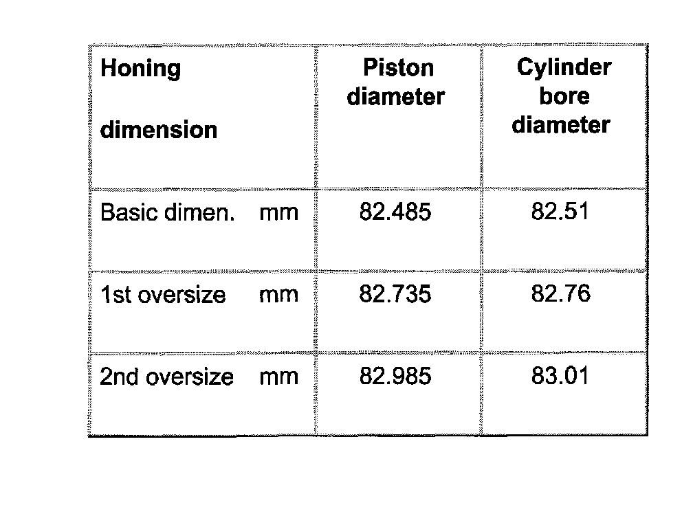 Piston and cylinder dimensions