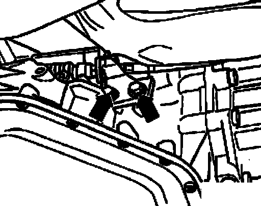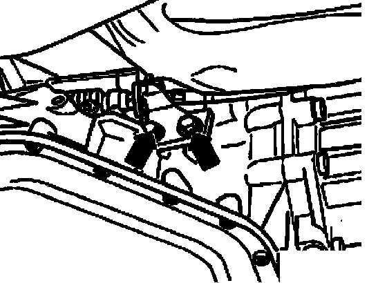 - Loosen bolts -arrows- securing support bracket to transmission.