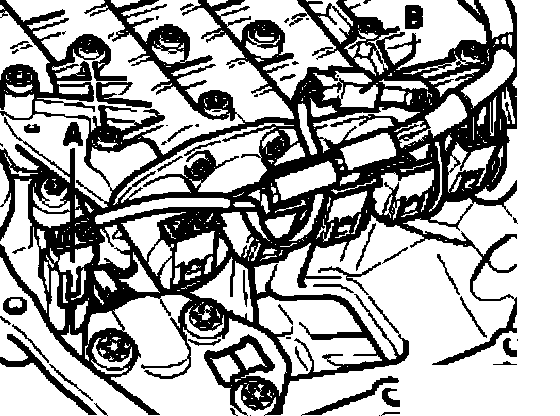 - So that the wire does not become trapped when installing the valve body, route the wire with connector -C- according to the diagram.