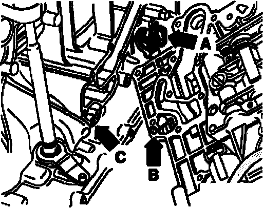 - Align dowel pin on valve body -arrow B- with hole in transmission housing -arrow C-.