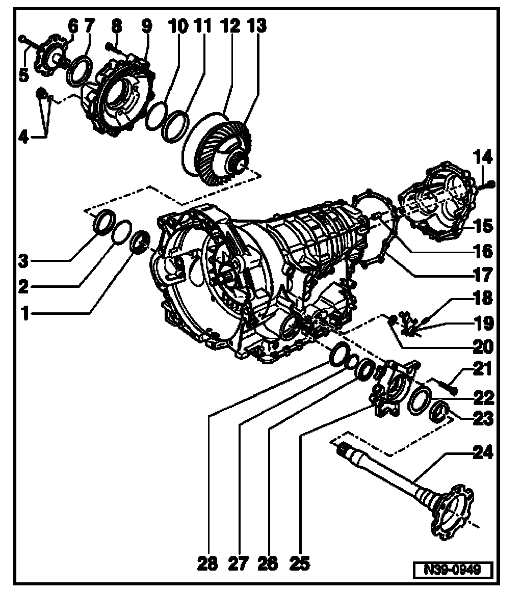 Front final drive, servicing, 01V, 5 SPD. A/T (FWD)