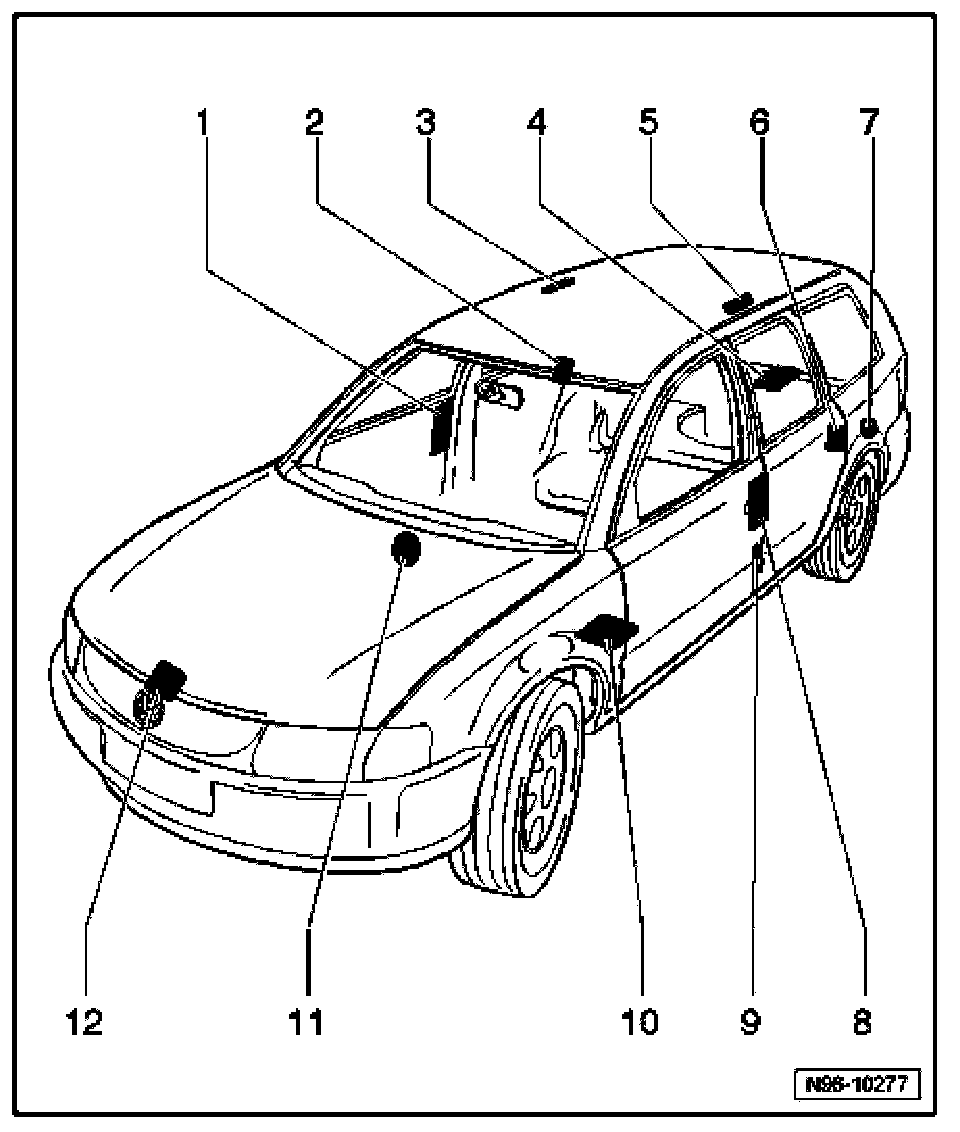- Location: in luggage compartment, above left rear wheel housing.