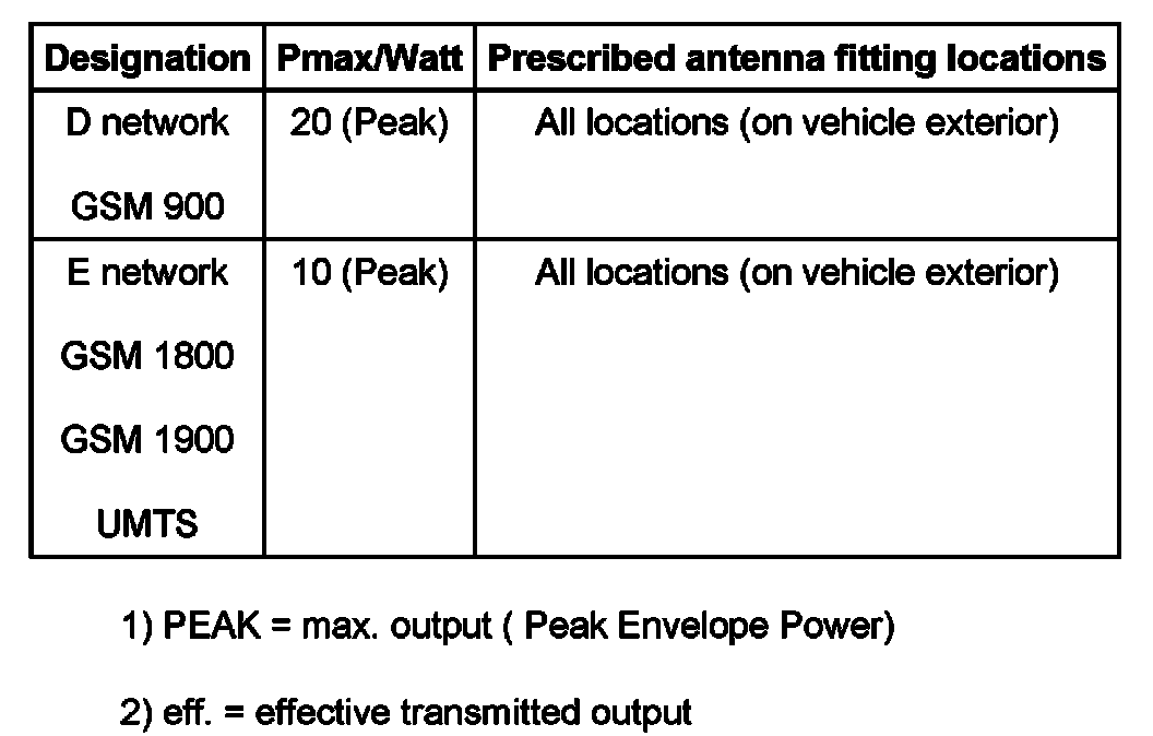 NOTE: Deviations from these guidelines (location of antenna, frequency, output) are only permitted in special isolated cases after a single-case test carried out by the EMV center of VW AG in Wolfsburg.