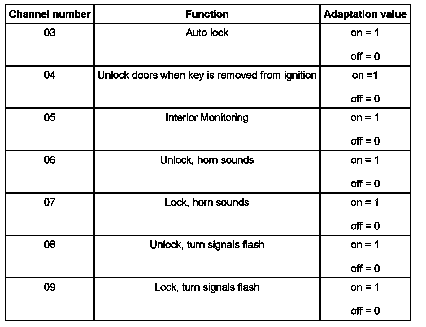 - Automatic lock/unlock (all doors are locked automatically at 15 km/h /10 mph and unlocked when key is removed from ignition switch).