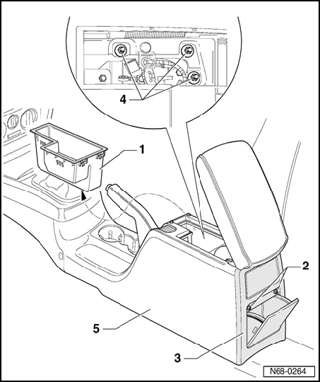 - Remove center console - 1 - from instrument panel and remove upward from shift lever.