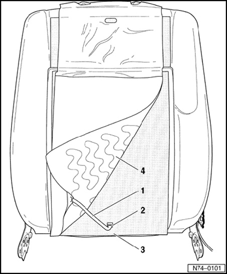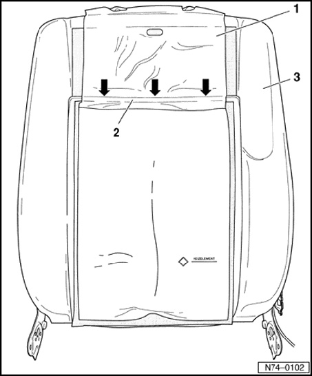 - When installing, cover - 1 - of heating element must be connected with backrest cover and backrest frame in recess - 2 - - arrows -.