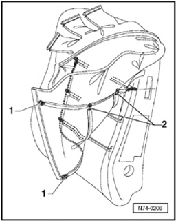 - Before installing backrest cover, check whether two tension wires - 1 - are present.
