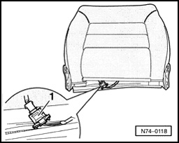 - Disconnect harness connector - 1 - for backrest heater.