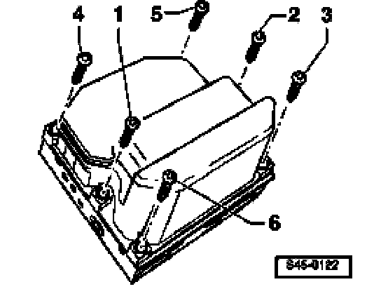 ^ Remove bolts -1- to -6- from hydraulic unit.