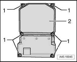 - Ensure control module is centered on hydraulic unit and then install new screws - 1 - and - 2 - evenly (do not tighten) so the gap between control module and hydraulic unit is equal on all sides.