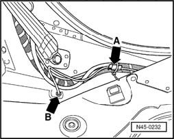 - Disconnect ABS wheel speed sensor harness connector - arrow A - and press out the grommet - arrow B -.