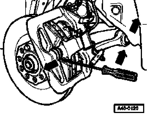 ^ To do this, press floating caliper outward using a screwdriver as shown in the diagram.