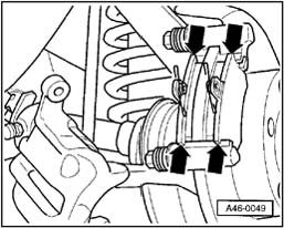 - Remove securing bolts from brake caliper housing, while counter holding on guide pins.