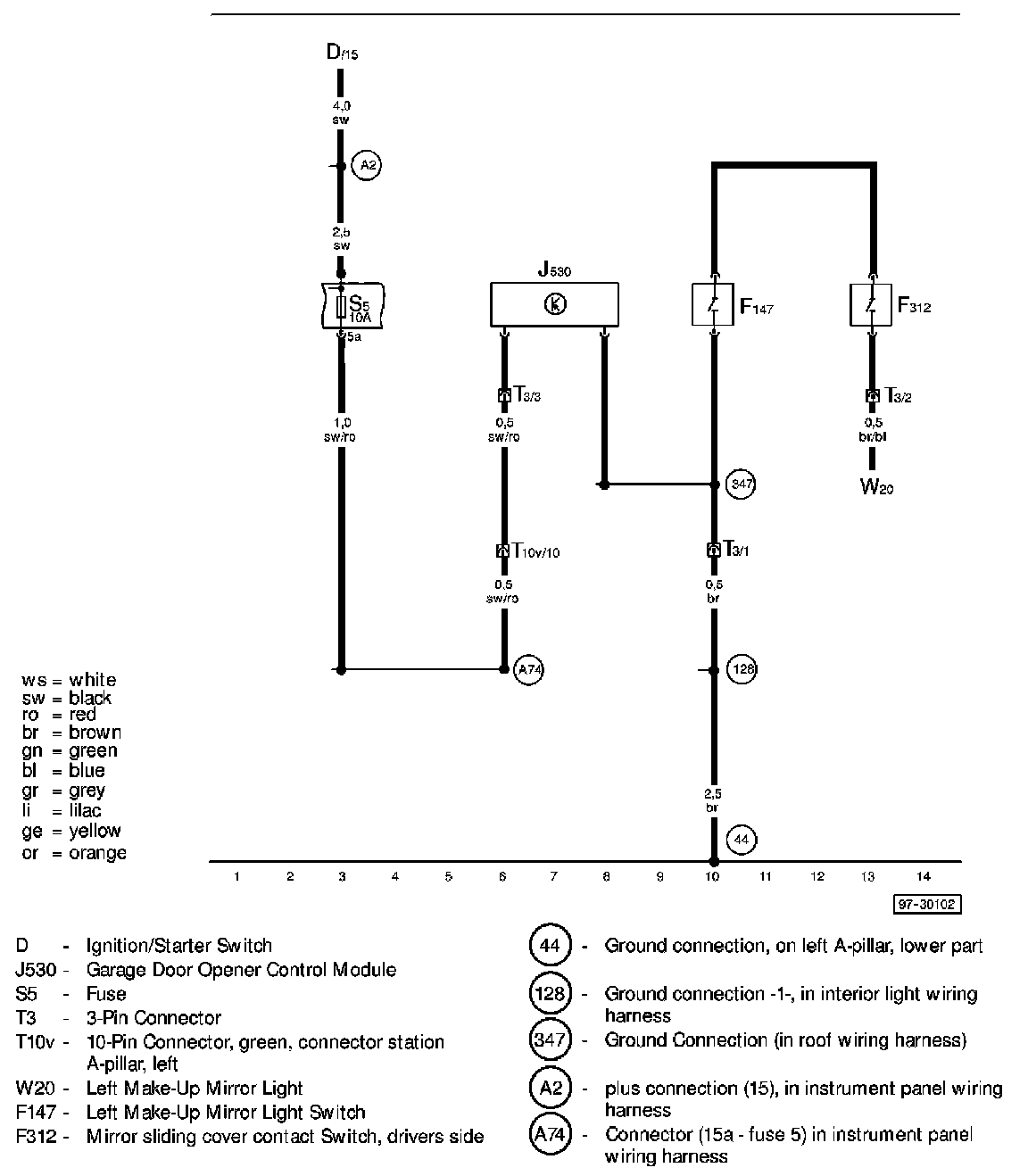 Fuse Identification: Starting with fuse 23, fuses in the fuse holder are identified with an additional numeral 2 added to the number when shown in the wiring diagram (i.e. fuse 23 in the vehicle becomes 223 in the diagrams, fuse 24 becomes 224, and so on).