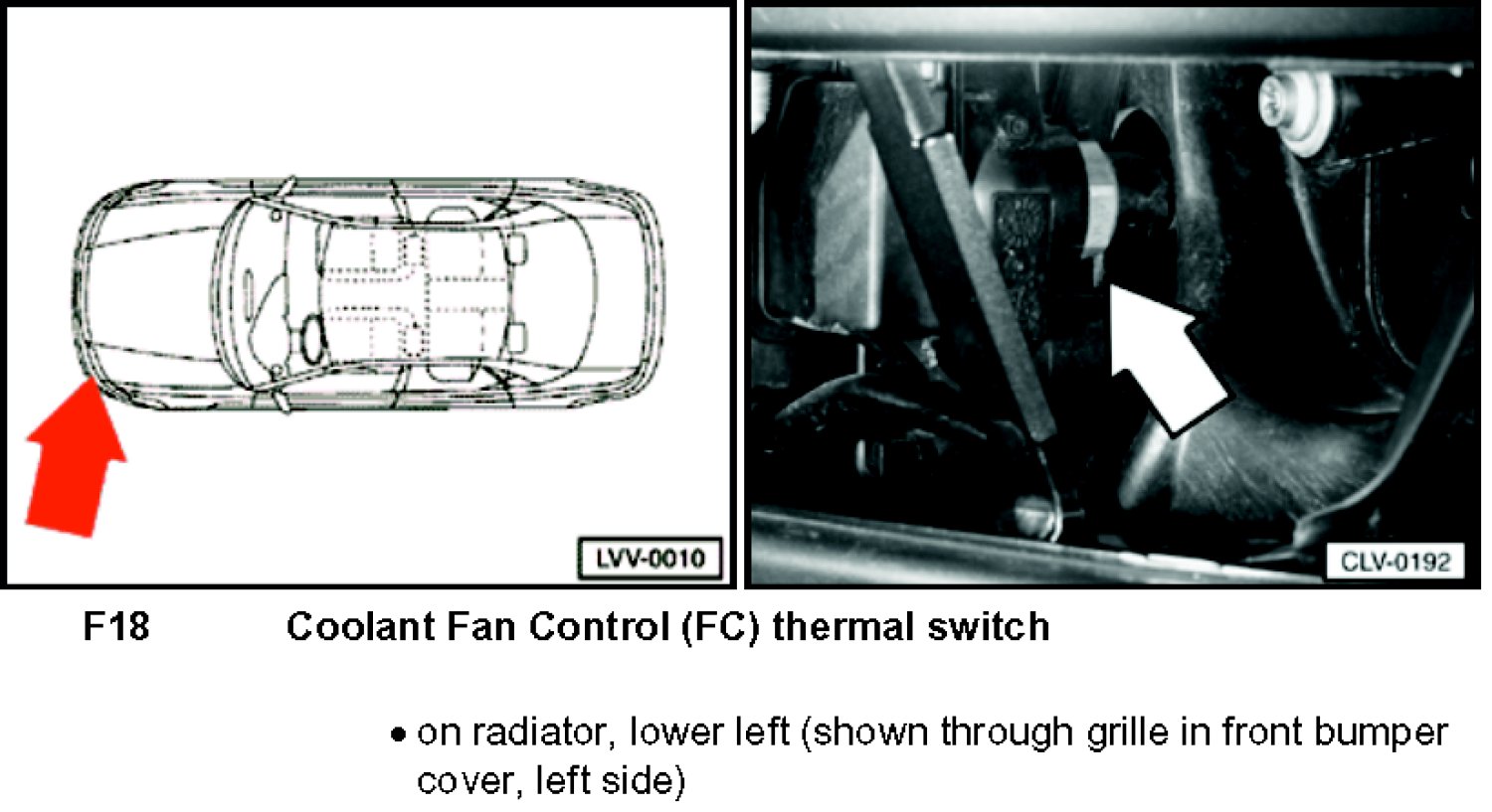 Radiator Cooling Fan Temperature Sensor / Switch: Locations