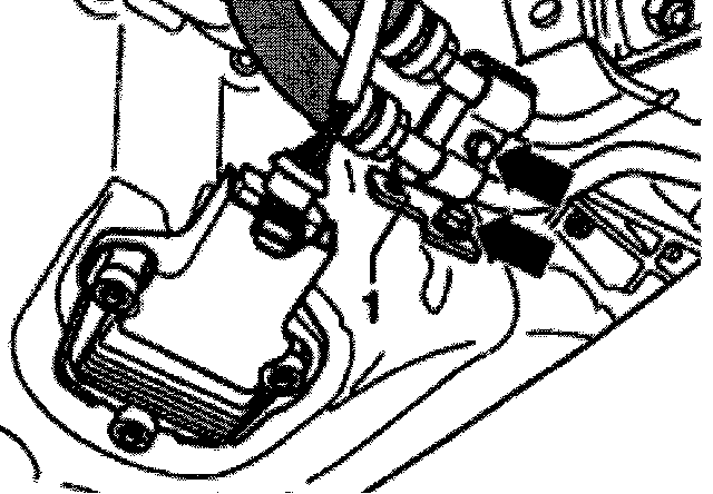 - Remove bracket -1- for ATF lines (arrows).