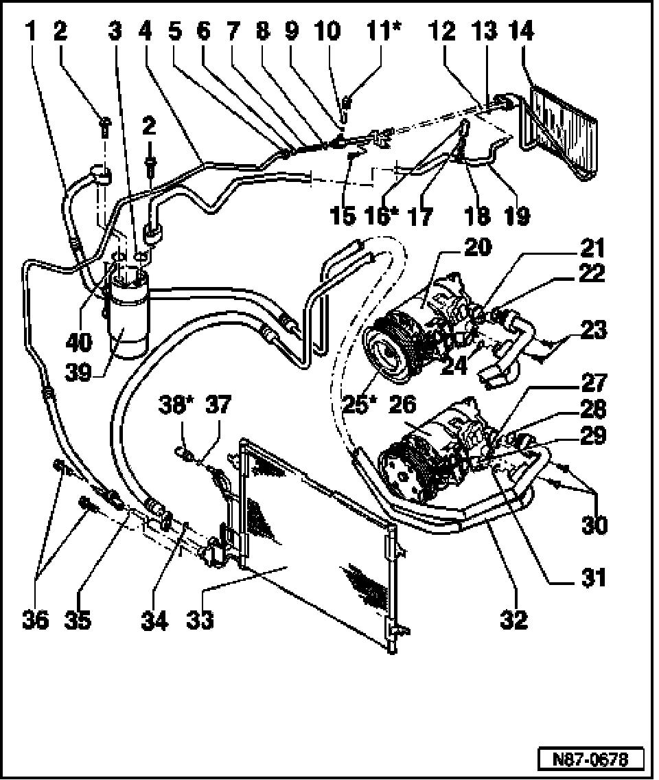 - Only system components identified with * can be serviced or replaced without discharging refrigerant system.