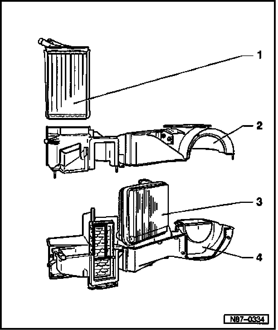 - Inspect all heating and A/C unit housing seals for damage and replace if necessary before installation. Evaporator inlet/outlet seal, see Fig. 2. Evaporator seal, see Fig. 3.