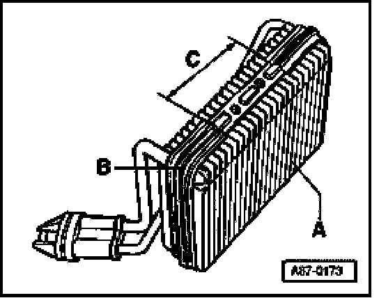 - Evaporator inlet -B- and outlet -A- pipes must be insulated between the halves of the housing with seal -C-