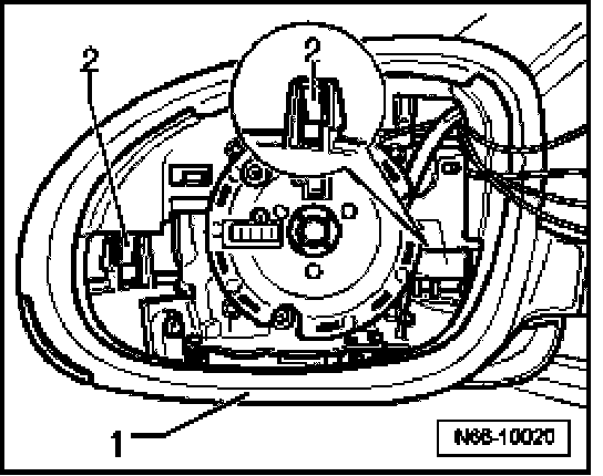 - Remove mirror housing -1 - upward from mirror carrier.