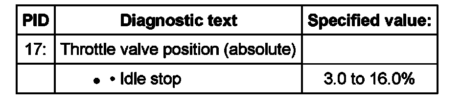 - Check specified value of throttle valve position (absolute) at idle stop: