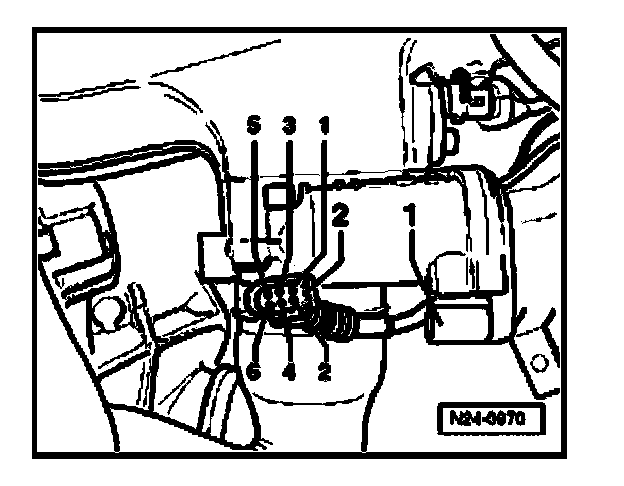 - Disconnect 6-pin connector -2- at the throttle valve control module -1-.