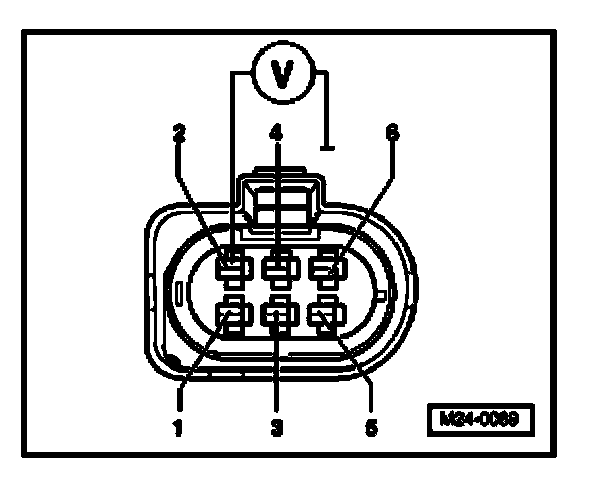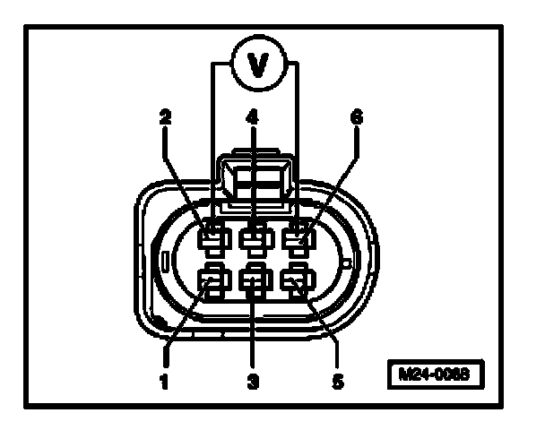 - Connect multimeter to terminals 2 + 6 of connector for voltage measurement.