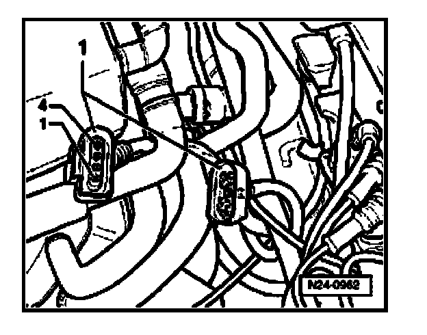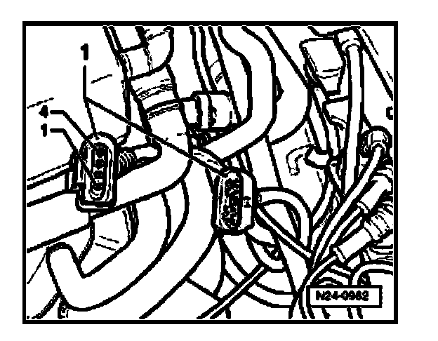 - Disconnect 4-pin harness connector (brown) to Oxygen Sensor (O2S) Behind Three Way Catalytic Converter (TWC) - G130- (-1-).