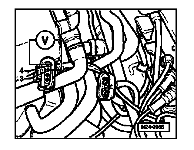 - Use adapter cables from (VAG1594) to connect multimeter to terminals 3 + 4 (Motronic ECM connector) for voltage measurement.