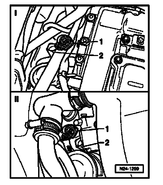 - Disconnect 4-pin connector -1- from Engine Coolant Temperature (ECT) Sensor -G62- (-2-).