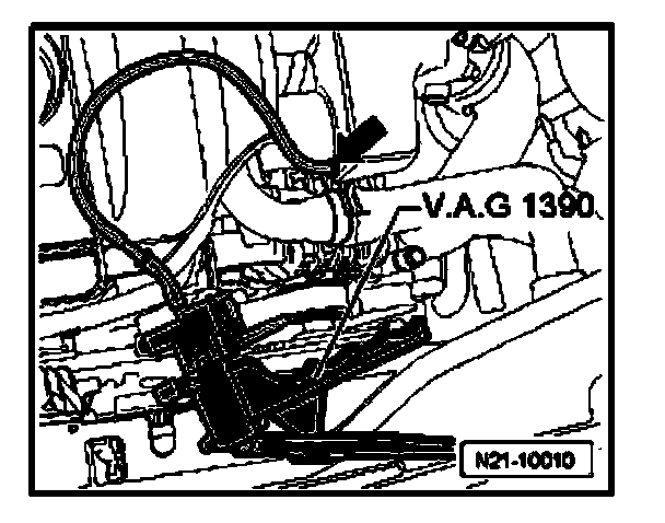 - Operate ventilation valve at Hand Vacuum Pump V.A.G 1390.