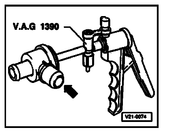 - Connect Hand Vacuum Pump V.A.G 1390 to vacuum connection of deceleration shutoff valve.