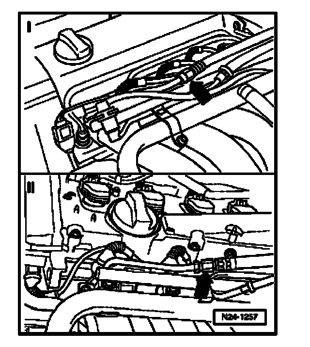 - Disconnect vacuum hose from fuel pressure regulator (arrow). Fuel pressure should rise to about 4.0 bar positive pressure.