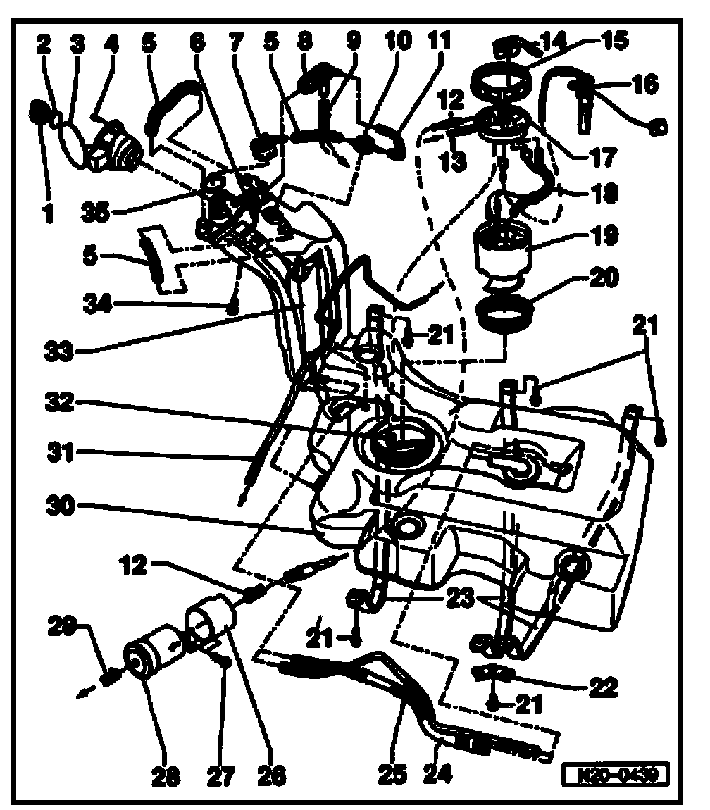 Fuel Tank With Attachments And Fuel Filter, Removing And Installing (Vehicles With Engine Code AUG, AWM)