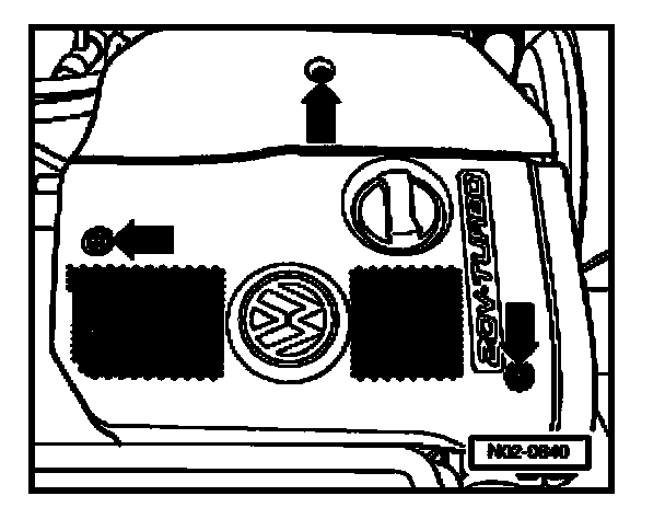 - Loosen clamp screws - arrows - and remove engine cover upward.