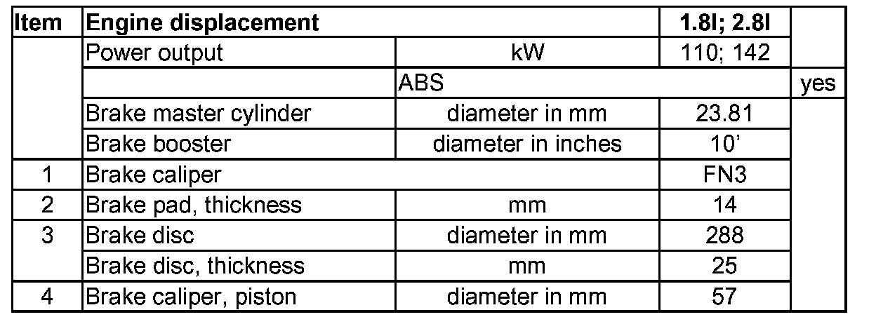 Vehicles with brake caliper FN3, 15" wheel from model year 2001