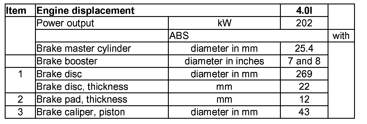 Vehicles with rear disc brakes, 15" wheel, model year 2000