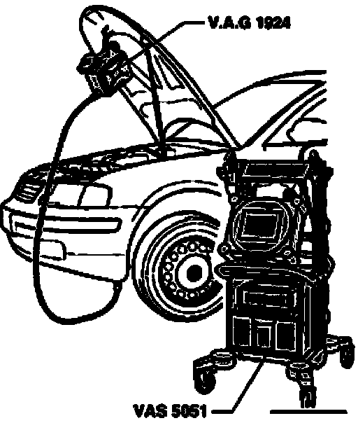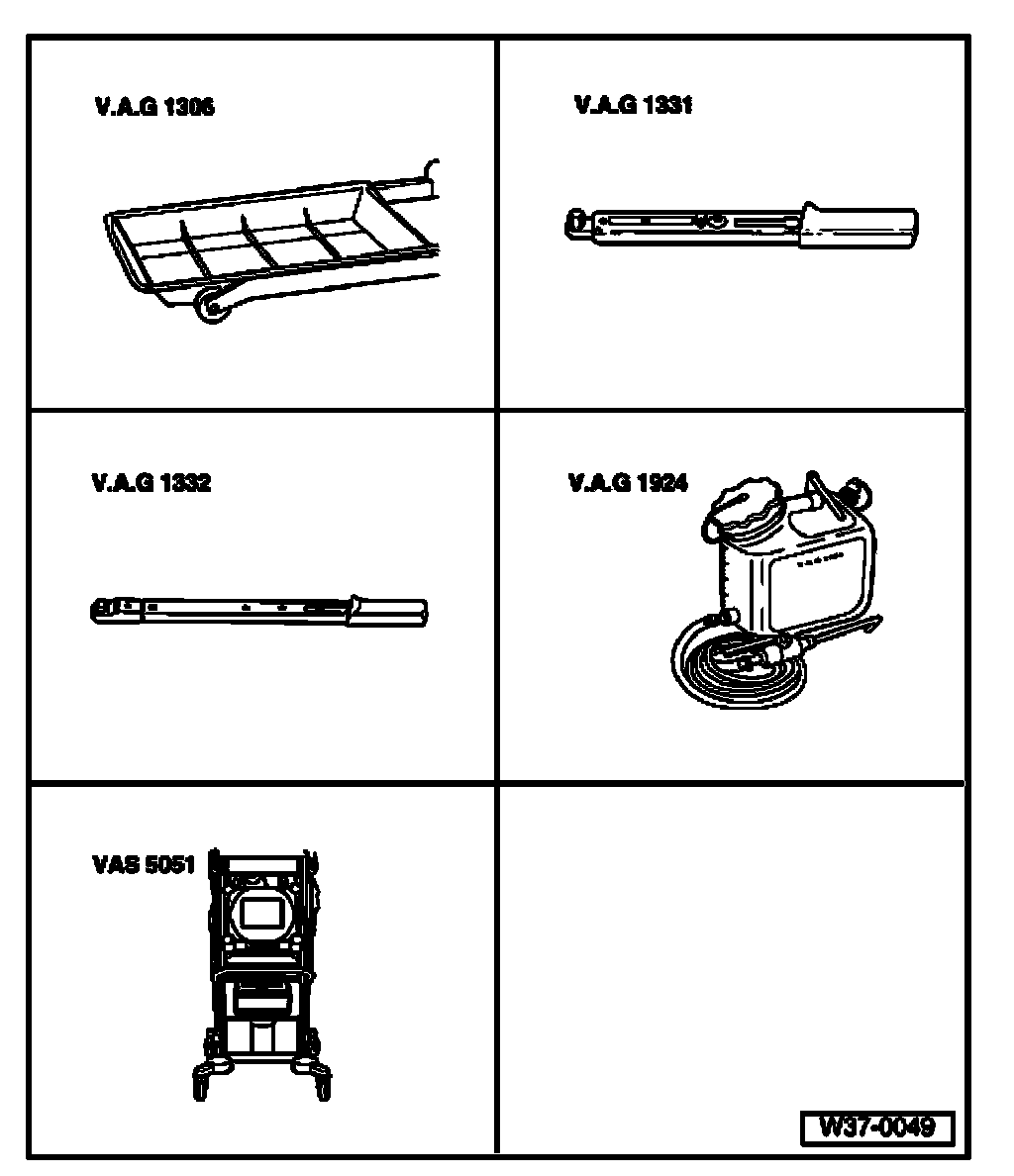 ^ ATF filler tool V.A.G1924 reservoir must be filled only with ATF permitted for automatic transmission 01V. ATF must not be mixed with other oils.