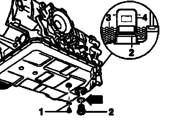 ^ Protective cap - 4 - with openings for ATF filler tool V.A.G. 1924. If reservoir is engaged into one of the openings, protective cap must not be pushed upward into oil pan while doing so.