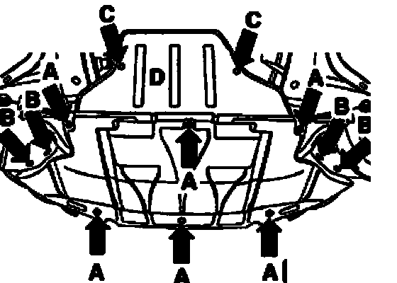 ^ For vehicles with noise insulation - D -, remove bolts - arrows C -.
