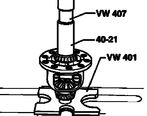 ^ Drive the axle for differential bevel gears into final position and secure.